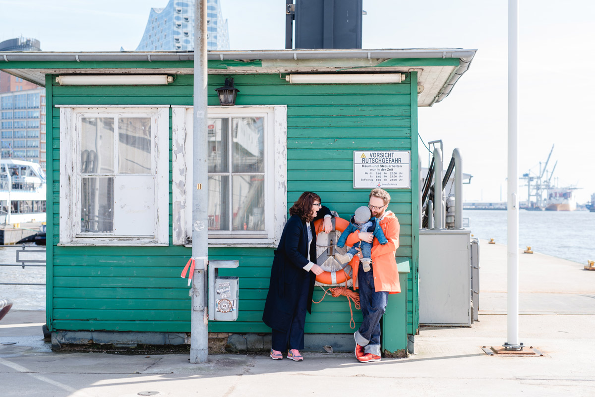 Anja und Stefan kenne ich nun schon seit 2 Jahren. Sie begleiten mich seitdem ständig, da ihre Hochzeit die bisher flippigste aus meinem Portfolio ist und ich liebend gerne immer wieder diese Bilder zeige. Im Dezember haben sie mich dann mit ihrem Nachwuchs Ben auf dem Weihnachtsmarkt in Dechsendorf überrascht, auf dem ich einen Stand hatte und Fotos gemacht habe. Das Wiedersehen war toll und herzlich und kurze Zeit später haben wir dann einen Termin für ein Familienshooting fix gemacht. Es sollte aber nicht irgendwo stattfinden, sondern in Hamburg. Ihrer Lieblingsstadt und meiner Heimat. Was soll ich sagen? Könnte ich öfter machen…